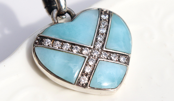 ●南の海をそのまま閉じ込めたような魅力、ラリマーのハートペンダント