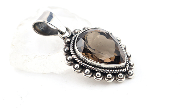 深みのあるブラウンのスモーキークォーツを、少し大ぶりな雫型にファセットカットしたことで、上品な輝きが生まれる美しいペンダントです。