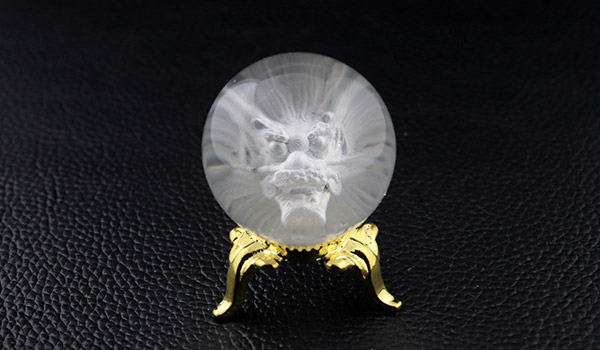 今回ご紹介している龍彫りの丸玉はすべて天然水晶で、純度100%の透明感ではありませんが