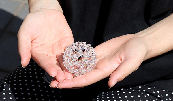 水晶で形作られたバッキーボールの中には、神聖幾何学の一つである「