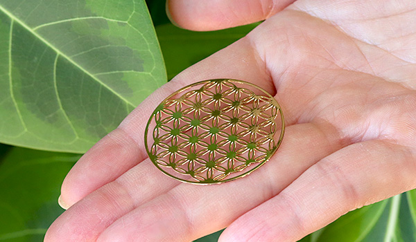 フラワーオブライフ」のゴールドカラープレートが入れ込んであります。