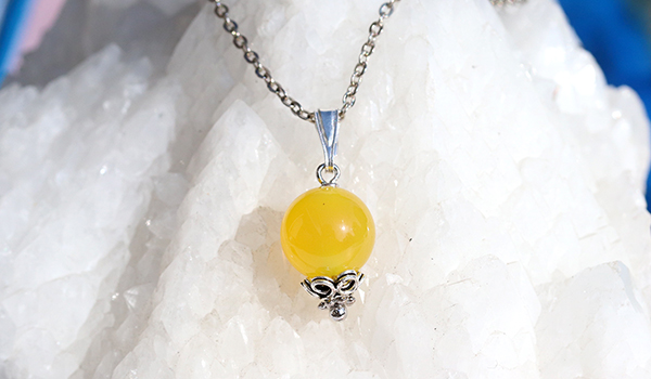 とてもポップで明るい印象を持つイエローカルセドニーの希望の光ペンダントをご紹介します。