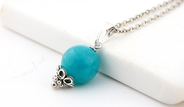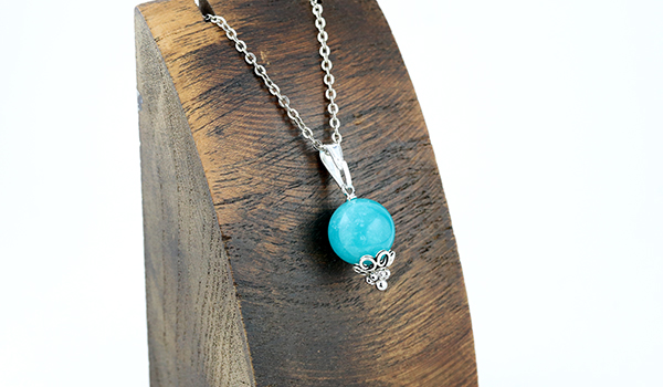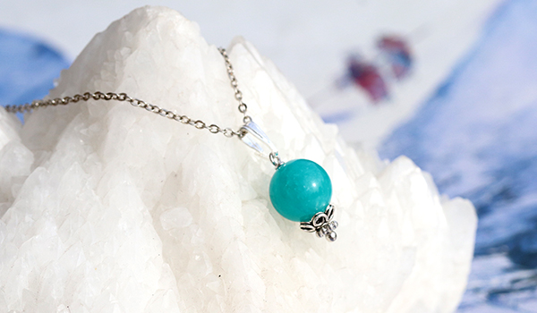 今回はロシア産のアマゾナイトのとても美しく、希少性の高いタイプを使用した希望の光ペンダントをご紹介します。