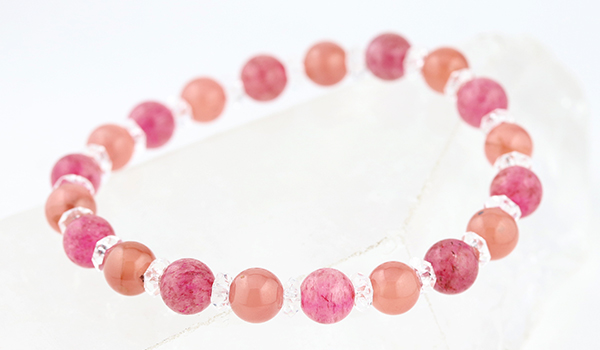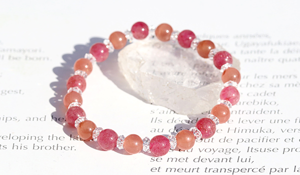 このインカローズ(ロードクロサイト)とアフリカンストロベリークォーツの組み合わせは、