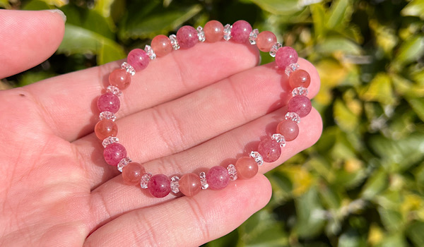 高品質ストロベリークォーツを組み合わせた特別版のハーモニーブレスをご紹介します。