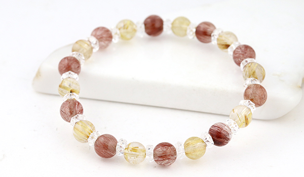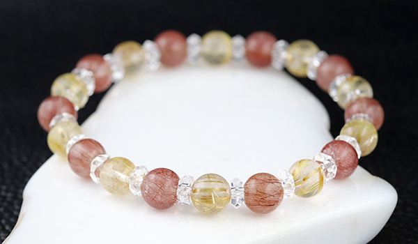 こちらもかなり美しいレッドルチルクォーツを組み合わせたハーモニーブレスレットをご紹介します。