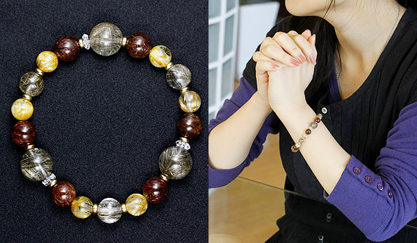 3つの色の高品質なルチル達の光が舞い散る特別なブレスレットをご紹介します。
