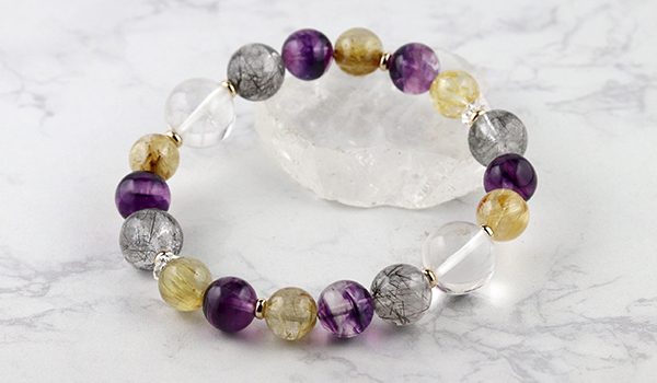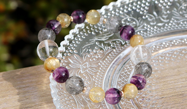 このブレスレットの光の部分はルチルとヒマラヤ水晶がもたらす