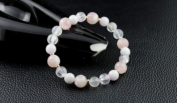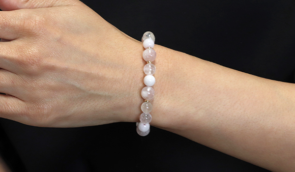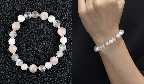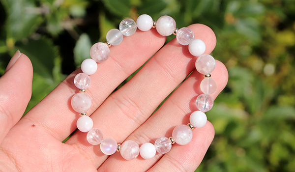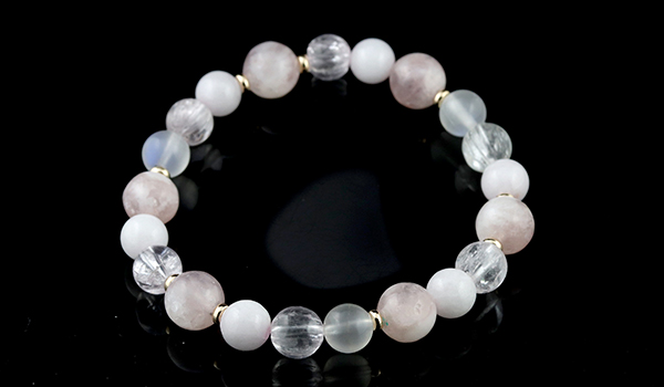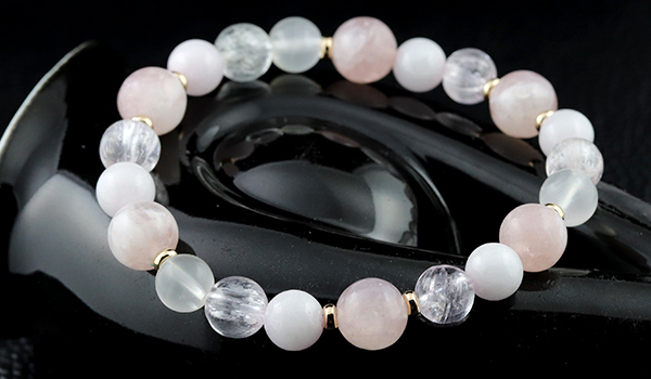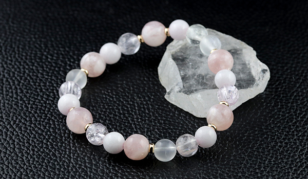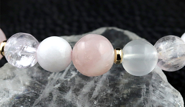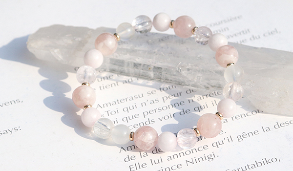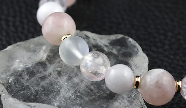 使用している石は、ピンクマイカ、クンツァイト、ピンク翡翠、ブルームーンストーン
