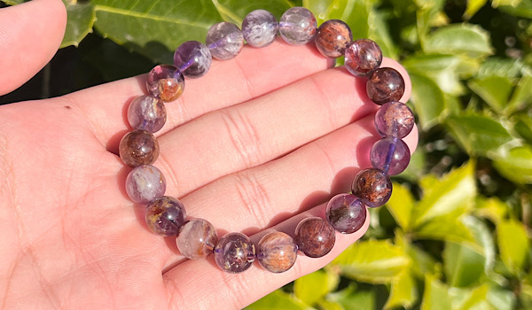 高貴かつワイルドな魅力を持つガーデンアメジストの大玉ブレスをご紹介します。