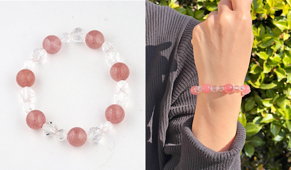 シンプルにアフリカンストロベリークォーツと水晶のみのブレスレットですので、