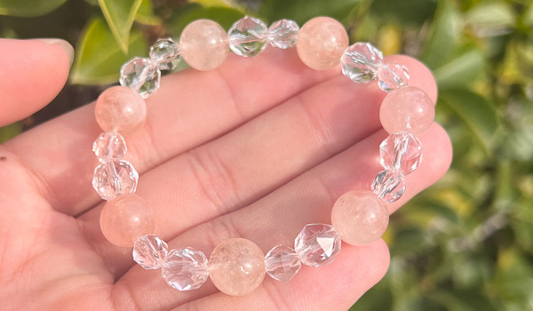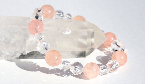 シンプルにモルガナイトと水晶のみのブレスレットですので、