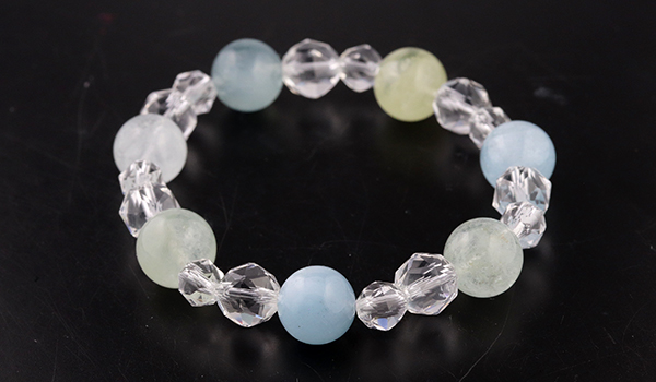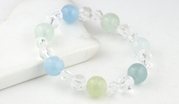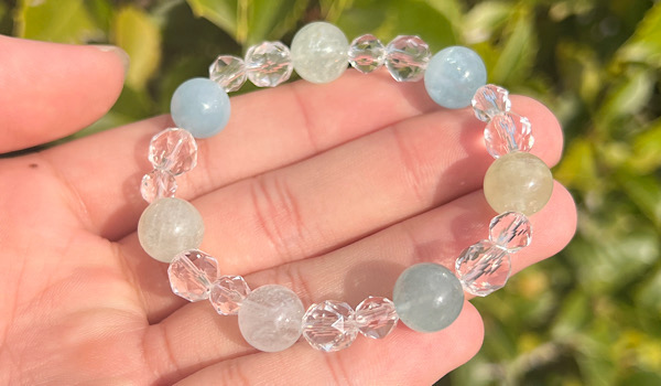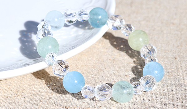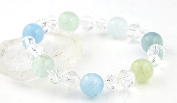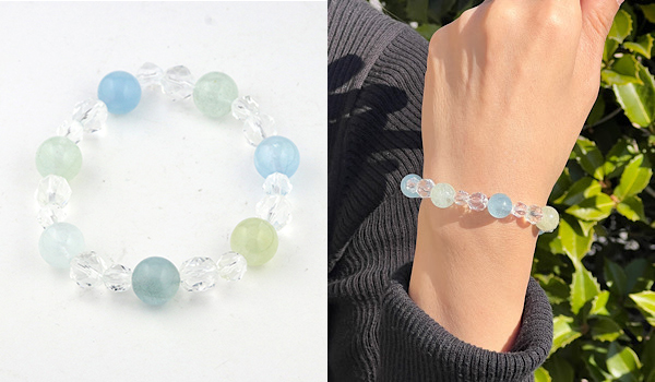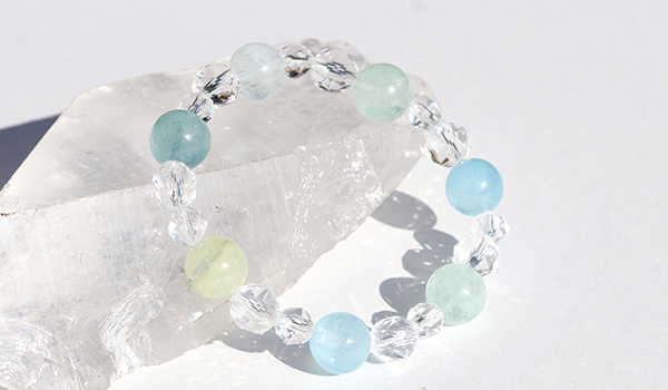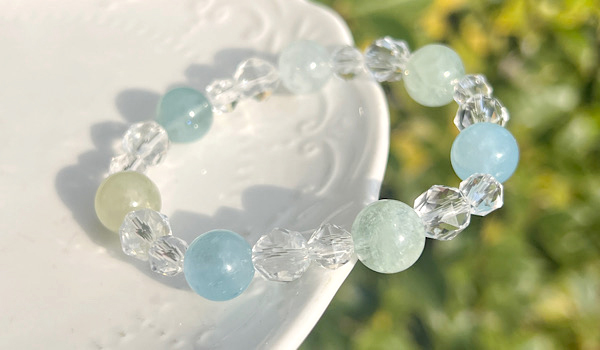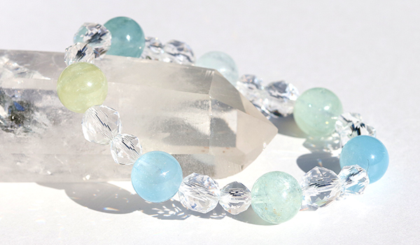 シンプルにアクアマリンと水晶のみのブレスレットですので、