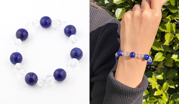シンプルにラピスラズリと水晶のみのブレスレットですので、