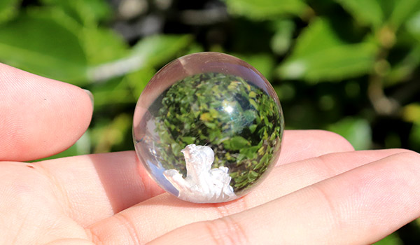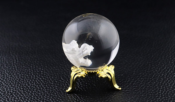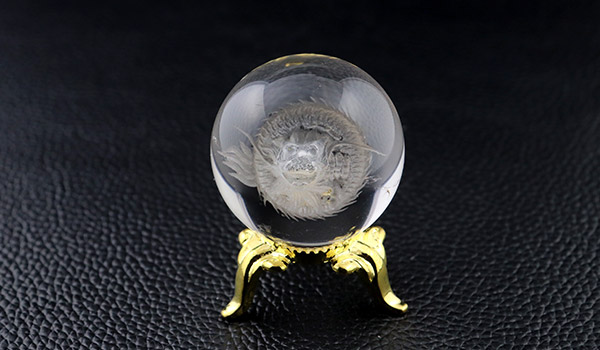 今回ご紹介している龍彫りの丸玉はすべて天然水晶で、純度100%の透明感ではありませんが