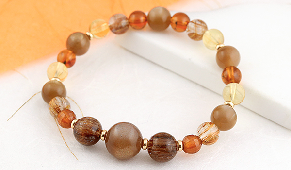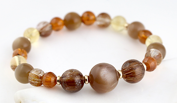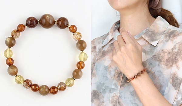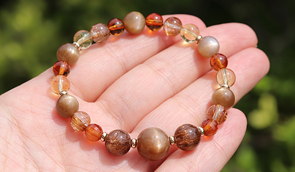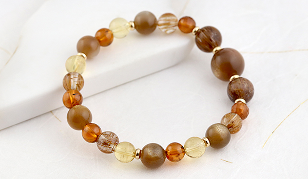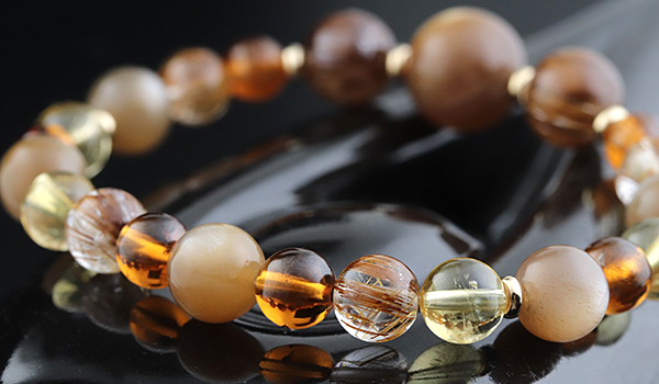 さらに華やかな色合いのオレンジガーネットやシトリンを組み合わせることで、単なる金運アップアイテムにとどまらず、オーラや内なる魅力を引き出すエネルギーに満ちた、大変美しいブレスレットに仕上がりました。