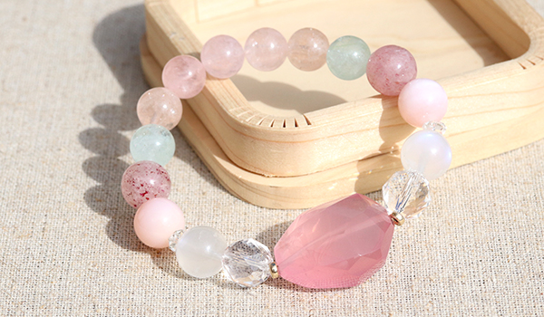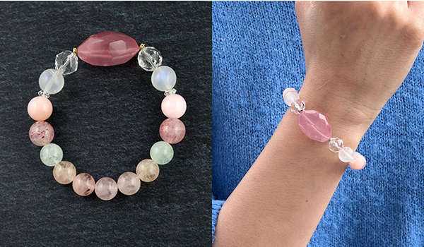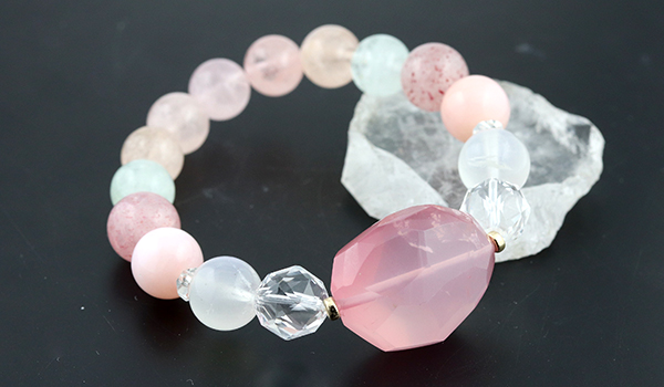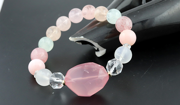 そのディープローズクォーツを中心にブレスレットを作成しました。