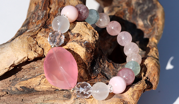 そんな特別なディープローズクォーツに加えて、愛と喜びの石達を加えて完成したのが