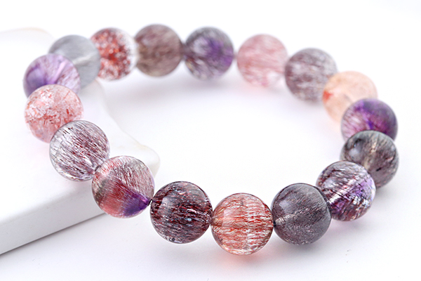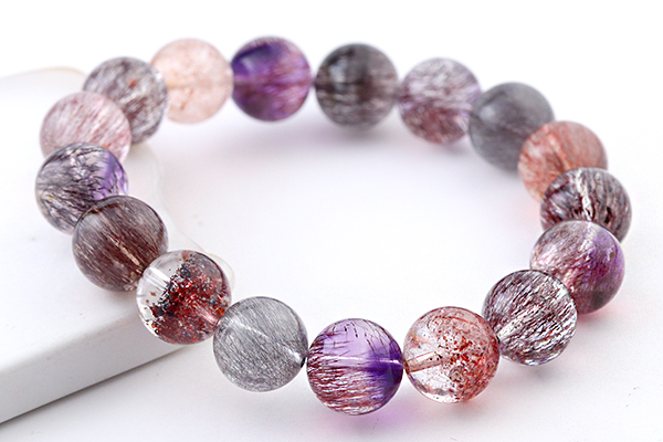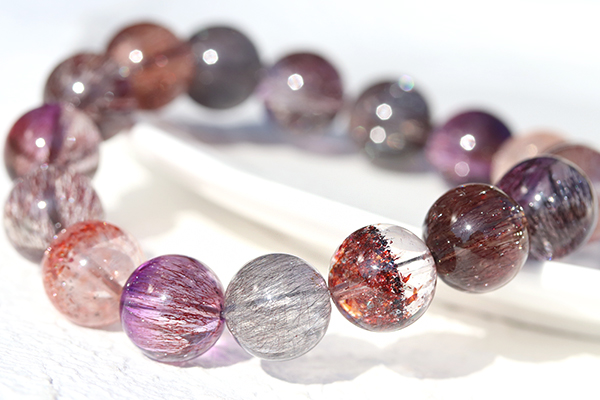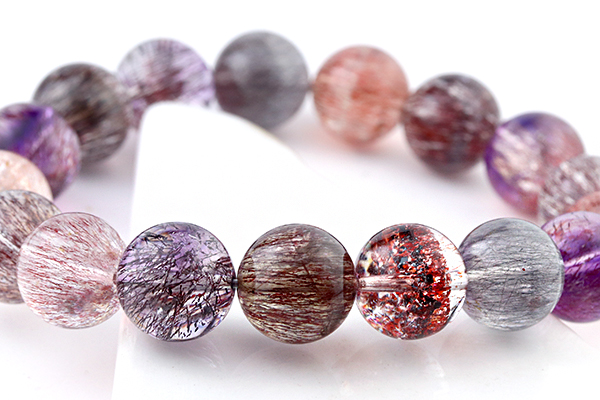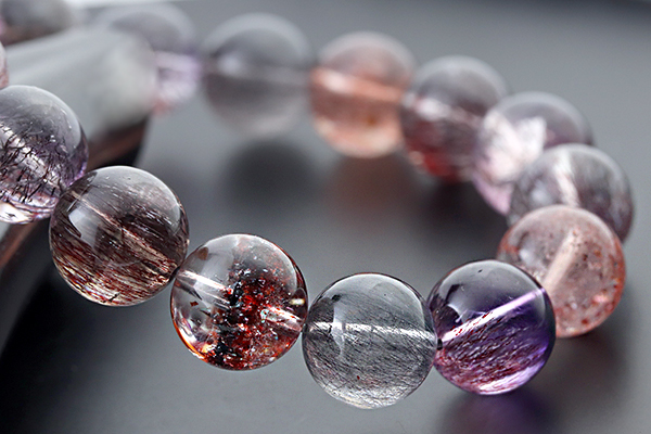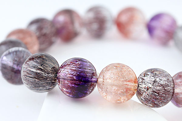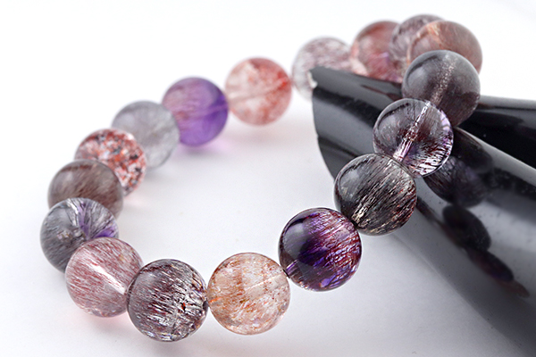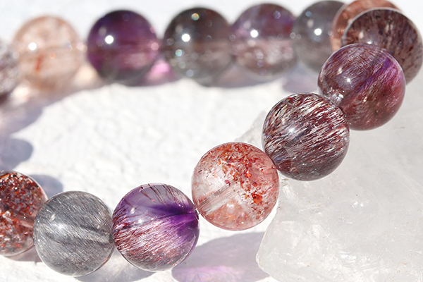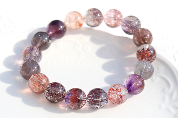 水晶を筆頭に、7種類もの鉱物が一つにまとまるという複雑な成り立ちから、奇跡の鉱物として人気が高いセイクリッドセブンのブレスレットです。