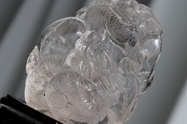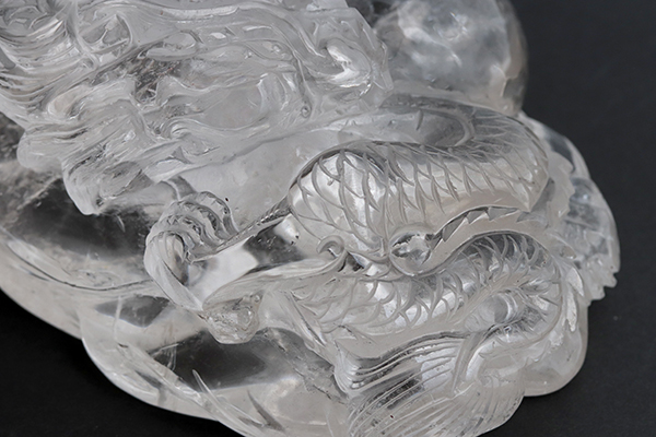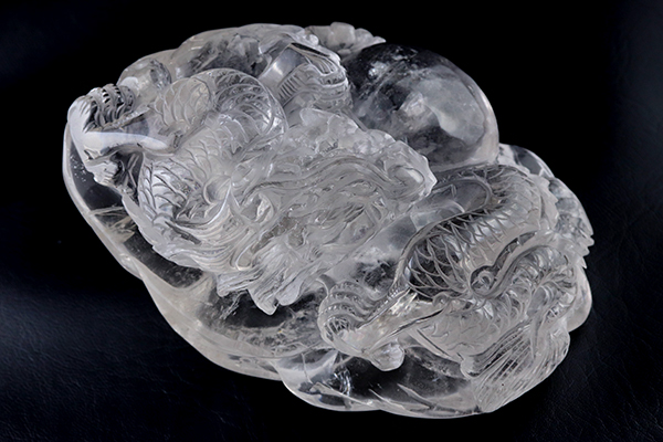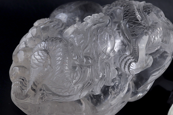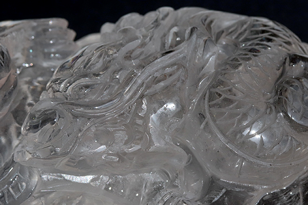 透き通るような透明度の高い水晶に見事な龍が彫られています!
