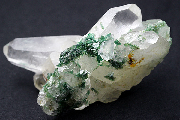 その鮮やかな緑色のフックサイトと水晶とのコントラストが絶妙で大自然を思わせる色合い。