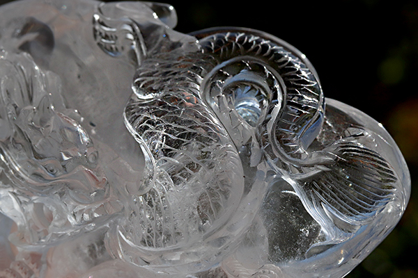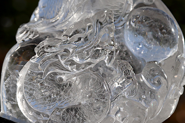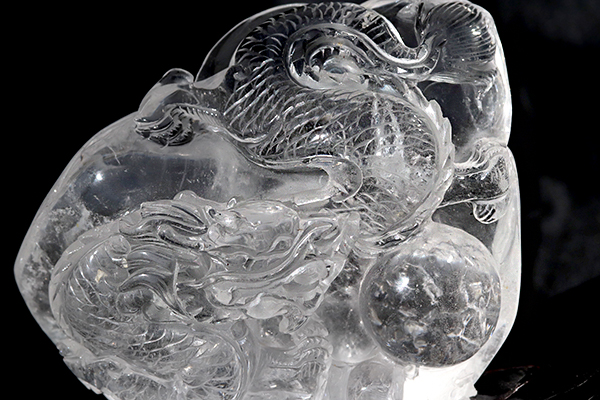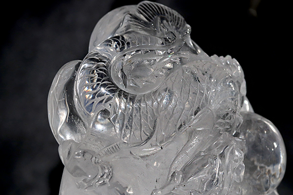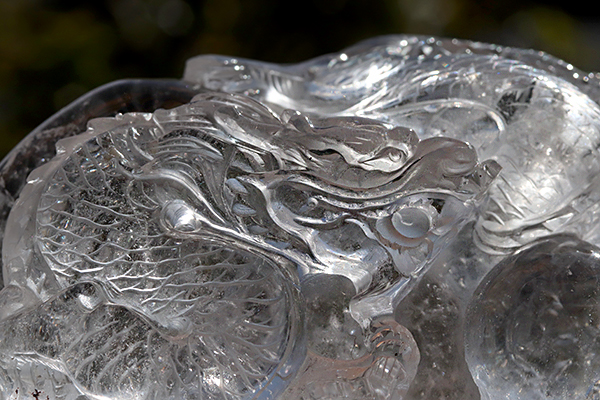 透き通るような透明度の高い水晶に見事な龍が彫られています!