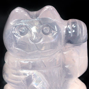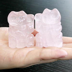 ローズクォーツ 招き猫ペア彫り物-036