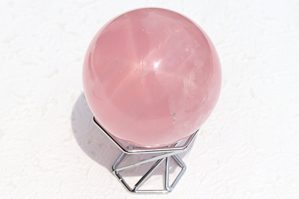 マダガスカル産スターローズクォーツ丸玉(台座付き)-058