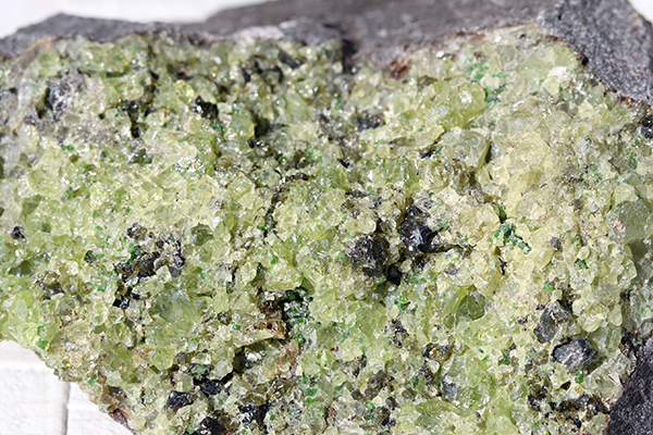 この細かな粒状の結晶は、微量のニッケルの影響により、鮮やかな黄緑色をしています。