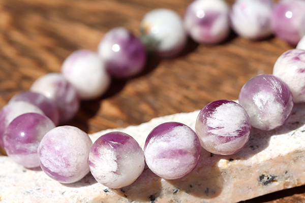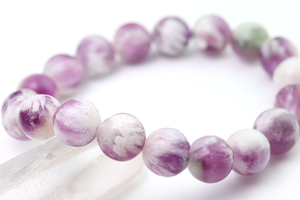 パープルエンジェルフェザーフローライト10〜10.5mmブレスレット-041