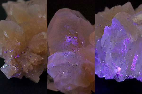 紫外線ライトを照射すると蛍光します。