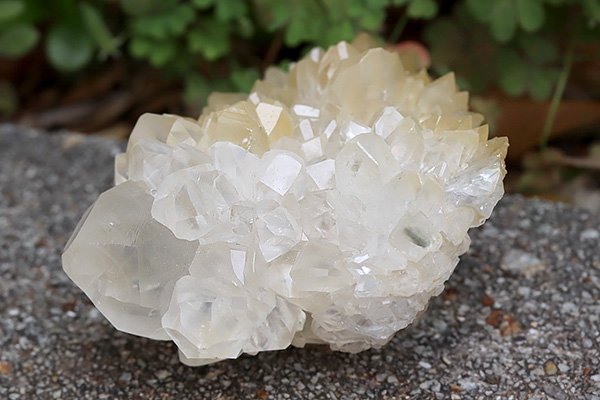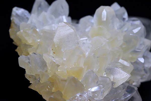 どっしりとしたポイント状の結晶とカルサイト独特の形状の結晶がびっしりと群生し、クラスター状の整ったシルエットを作り上げています。。