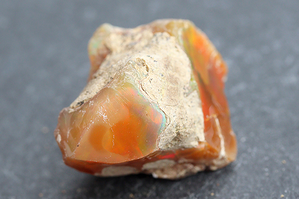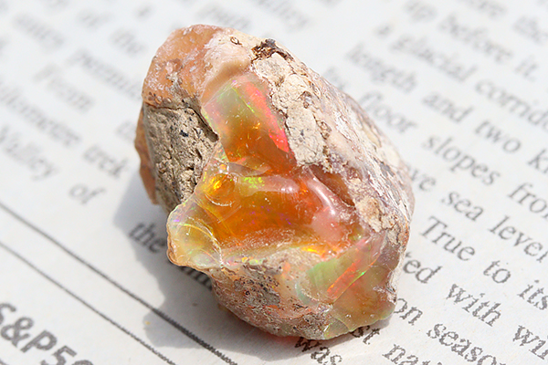 透明度の高い明るいオレンジの地色に、眩しい程に煌めく赤や緑・青などの鮮やかなオパールの遊色効果は圧巻です!