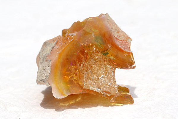 透明度の高い明るいオレンジの地色に、眩しい程に煌めく赤や緑・青などの鮮やかなオパールの遊色効果は圧巻です!