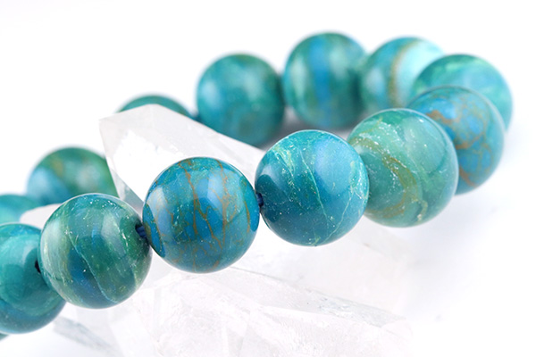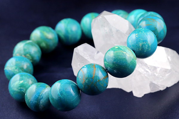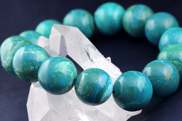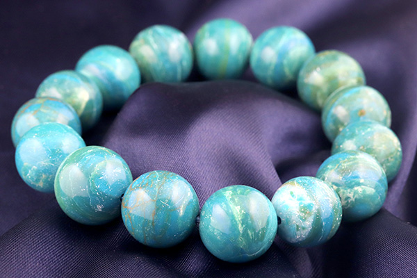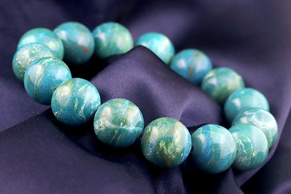 見つめるだけでワクワクするとても綺麗な色合いにうっとりする高品質なブルーオパール。13〜15mm珠とボリュームがあり、一つ一つの珠の違った表情をじっくりとお楽しみいただける逸品です。