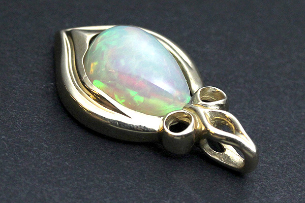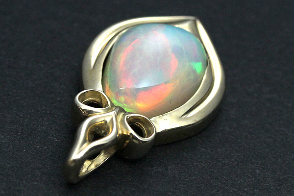 光が織りなす不思議な色の世界で目を楽しませてくれる、エチオピア産のオパールをあしらったペンダントです。