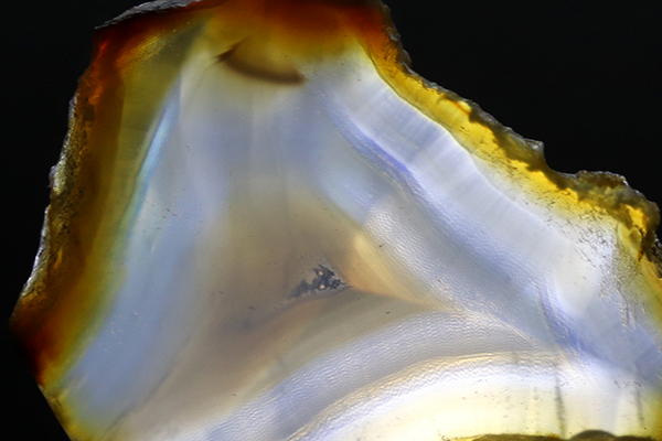 アゲート原石を薄くスライスし、ライトを照らすまでその全貌を見ることが出来ず、またその原石の中でもごく一部の部分のみにしか綺麗な虹色の輝きを見ることが出来ない「幻のアゲート」と呼ばれています。