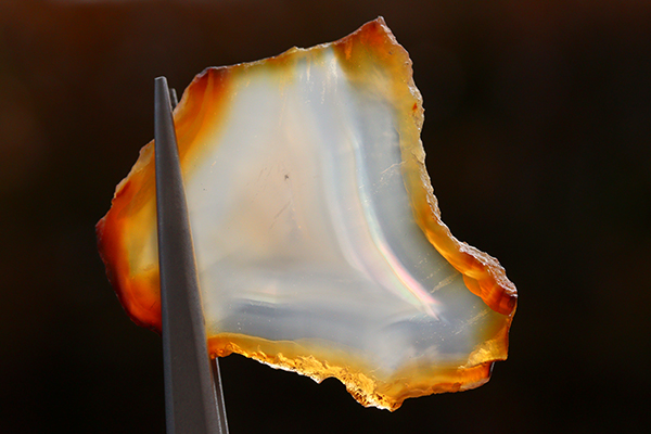 レインボーアゲートとも呼ばれており、浮かび上がるレインボーのアーチはオパールの輝きにも引けを取らない感動的美しさ!