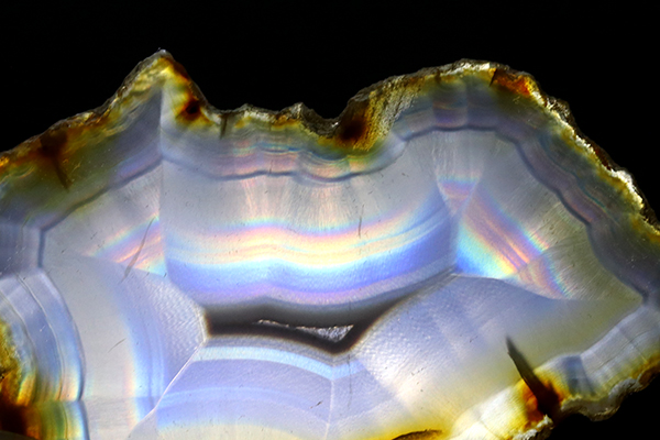 レインボーアゲートとも呼ばれており、浮かび上がるレインボーのアーチはオパールの輝きにも引けを取らない感動的美しさ!