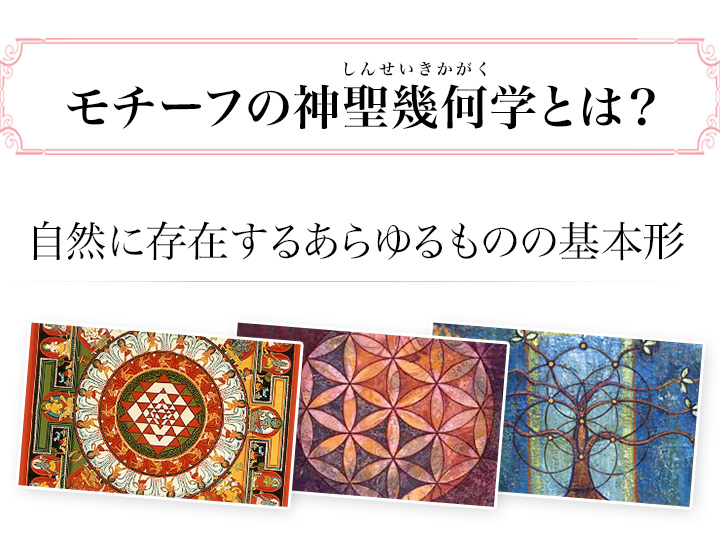 「フラワーオブライフ」「シードオブライフ」「ヤントラ」「チャリスウェル」「セフィロトの樹」「トーラス」「メタトロンキューブ」という人気の神聖幾何学模様です。