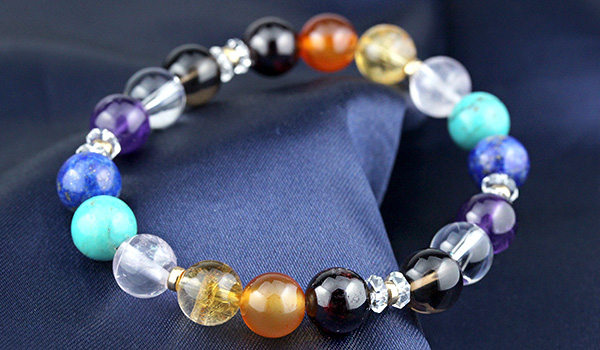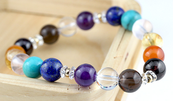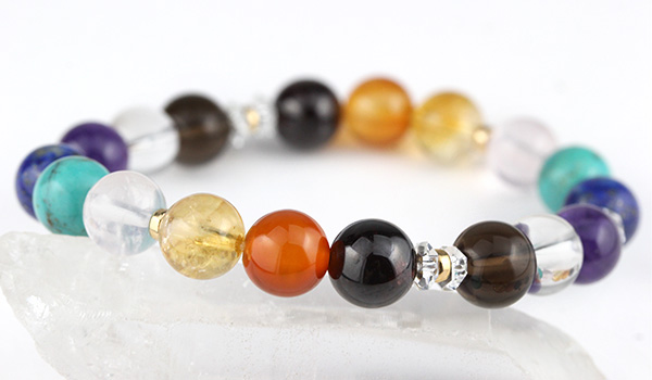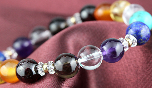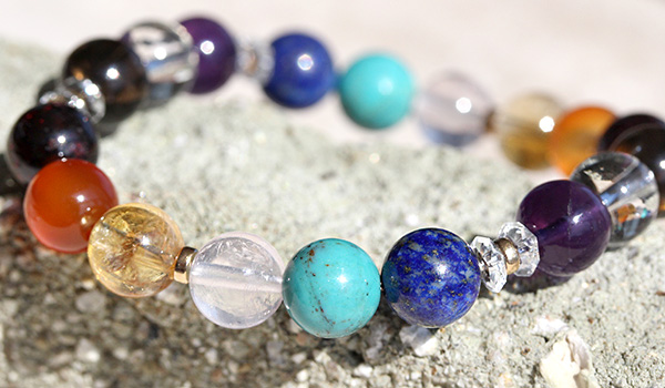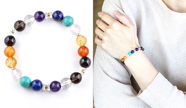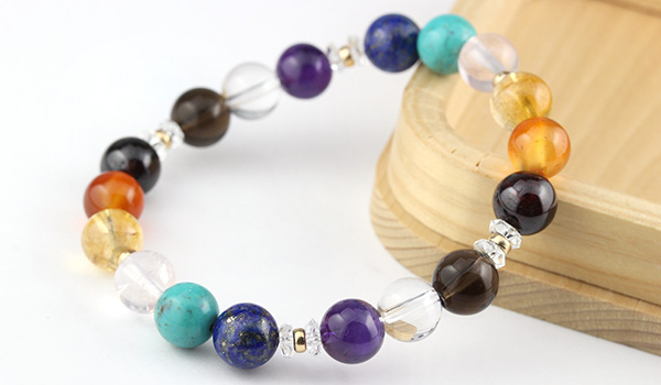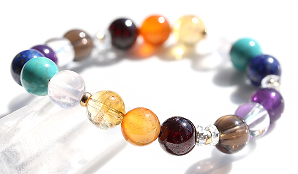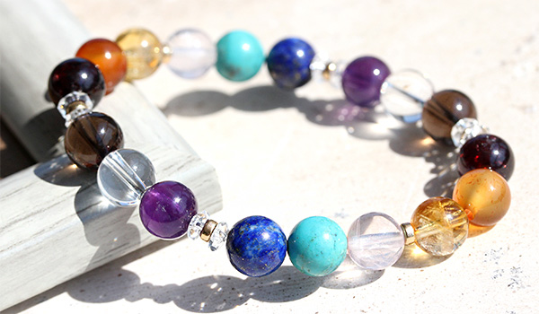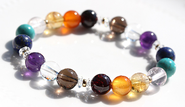 全体的なエネルギーの流れを綺麗にすることをテーマに、9種類ものパワーストーンを組み合わせたブレスレットです。