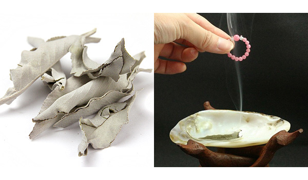 この煙に感謝の祈りを込めてパワーストーンを煙の中に10秒〜20秒ほどくぐらせます。