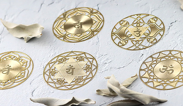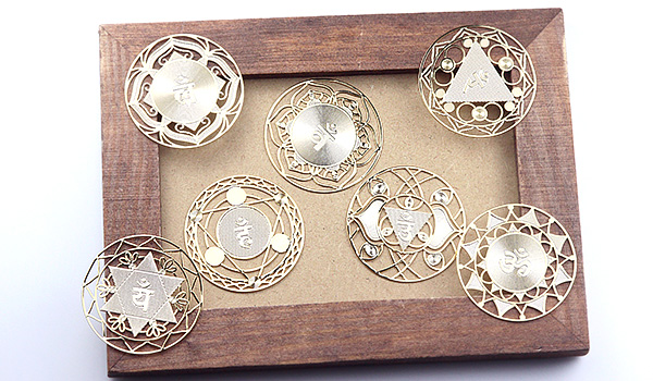 7種類のプレートは、第1〜7のチャクラを表す蓮と梵字をモチーフにしたデザインとなっています。