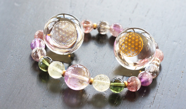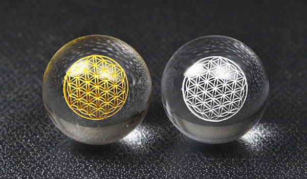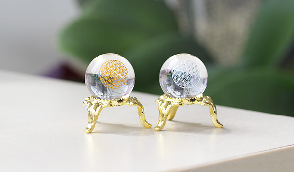 水晶に彫り込まれたフラワーオブライフは、デザイン性だけでなく神秘の力を持つ