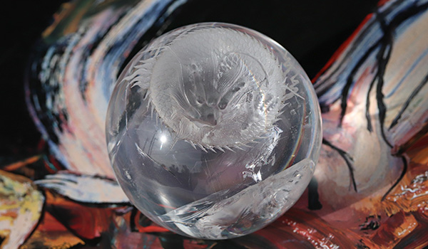 ●一点限定!今にも飛び出してきそうな迫力満点の龍が彫り込まれた約73mmの水晶丸玉