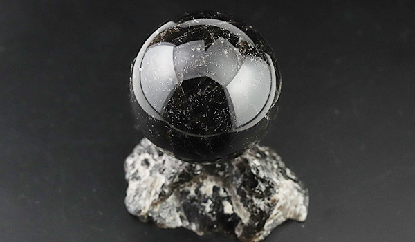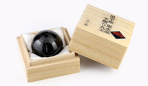 ここまでの大きさの丸玉を削り出すには、ただでさえ貴重な大きい原石を贅沢に使う必要があるので、最も稀少な水晶である黒平産黒水晶を丸玉にすることは滅多になく、取り扱っている所も少ないという