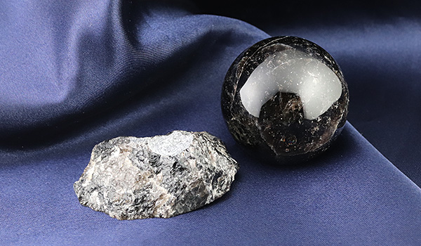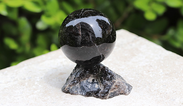 こちらの丸玉に使用したのは、おそらく過去に採掘された中でも大きいもの、かつ黒の色味が深い高品質な原石を厳選したのでしょう。