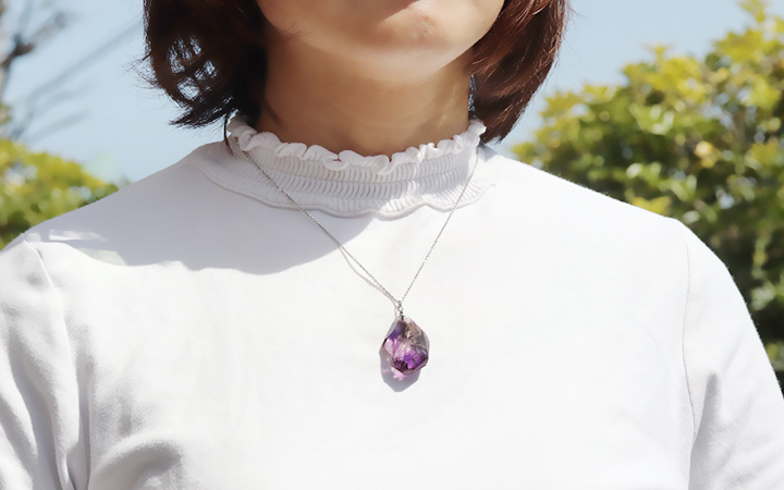 高品質なアメジストエレスチャルクォーツの美しさを活かし、