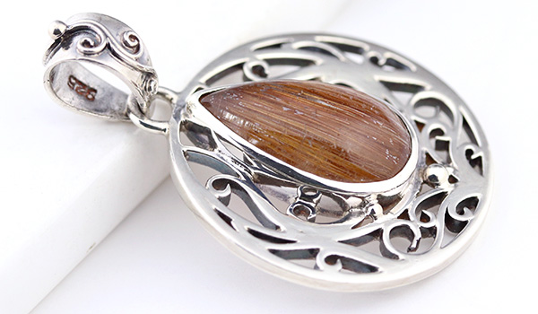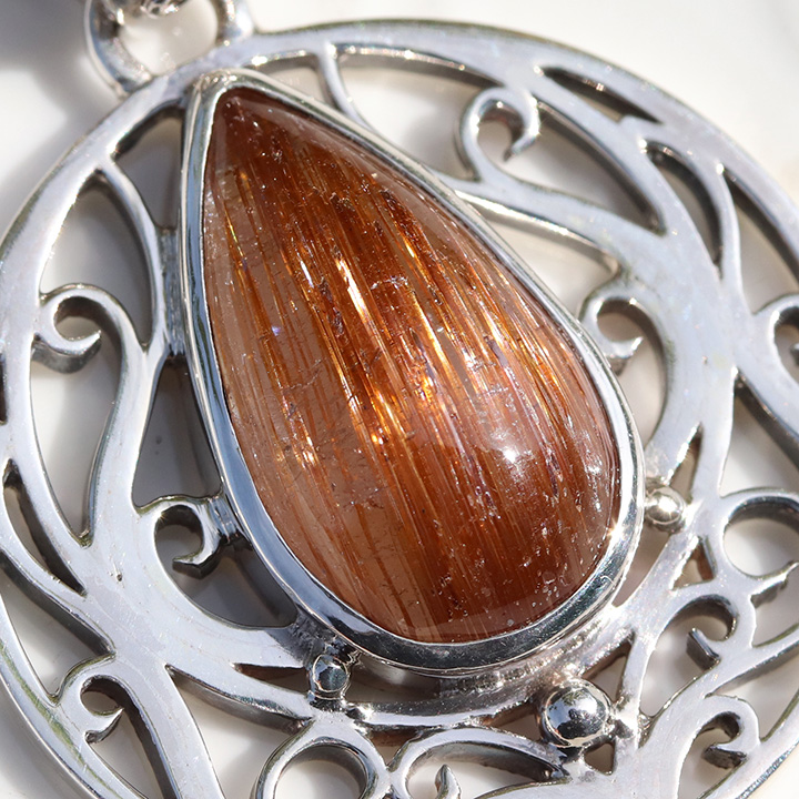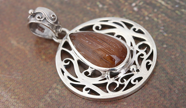 本当に美しいブラウンルチルクォーツキャッツアイのルースを使用したペンダントです。