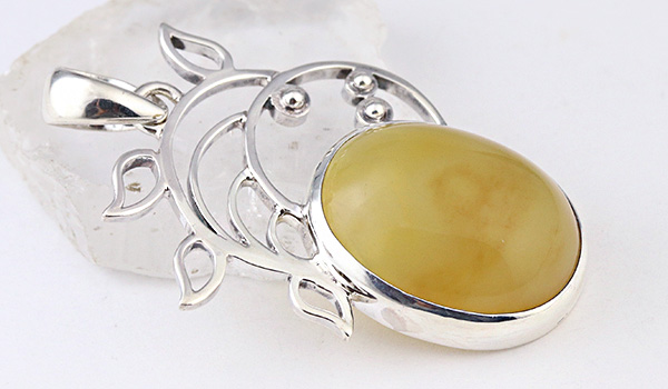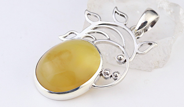 イエローオパールを引き立てる台座は、太陽のようでもあり、ヒマワリのようにも見えるシルバーの装飾。